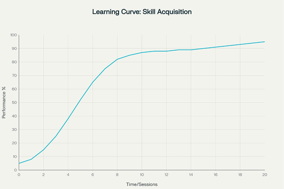 The plateau phases aren't learning failures—they're consolidation periods where your brain is organizing new knowledge [4][5]. Understanding this curve helps you persist through apparent stagnation and recognize that sudden breakthroughs often follow extended practice [5][6].