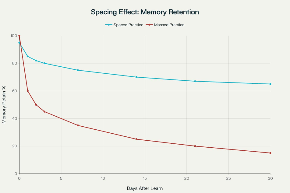 This explains why intensive weekend workshops often fail to create lasting change, while regular short sessions build expertise [8][9]. Your brain needs time between encounters to consolidate learning into long-term memory [7][11].